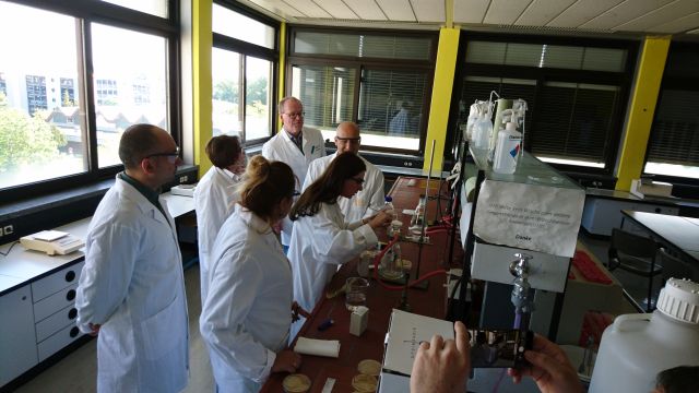 Am 14.05.2019 hatten wir Besuch aus unserer Partnerstadt Sumgait (Nähe Baku), mit der eine langjährige Kooperation mit den Wirtschaftsbetrieben Ludwigshafen (Abwasserkontrolle) besteht. Unsere Gäste waren neugierig zu erfahren, wie in Deutschland die Trinkwasserkontrolle nach TVO durchgeführt wird. Hierzu stellte sich unser Kollege Dr. Josef Breidenbach (Fachbereich Mikrobiologie) zur Verfügung, unseren Gästen einen kurzen Einblick in die Arbeitsweisen nach der aktuell geltenden DIN-Vorschrift zu geben.
