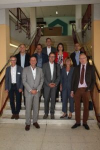 Abteilung berufsbildende Schulen sowie durch Herrn Stingl aus dem Bereich schulartübergreifende Koordination der Bildung in der digitalen Welt vertreten. Für die Landesvereinigung der Unternehmerverbände Rheinland-Pfalz wurde war Frau Köhr anwesend. Ebenso gehörten die Schulleiter der vertretenden berufsbildenden Schulen, Herr Taus, Herr Stutzmann und Herr van Hauth zu der Gruppe.