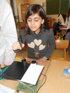 „Wieso?“ will Youseff wissen. “ Licht hat die Energie als Wärme in sich“ meint seine Nachbarin, „genau wie die Sonne“. Der UTA-Schüler Jan ist erstaunt, was die Grundschüler schon alles wissen.