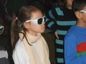 Nachdem die Planeten bereits bemalt sind, erscheint der Aufbau im Abstand zur Sonne recht einfach, nur das Messen der richtigen Abstände gestaltet sich etwas schwierig. Der Aufbau für die Aufspaltung des Lichts mittels eines Prismas war da schon eine größere Herausforderung: “ Hey,“ schimpft Simge, “ das Gerät muss hier hin“ und schubst Achmed sanft beiseite. Die Plazierung des Prismas und die Justierung der Lampe sowie des Schirms sind zwar knifflig, machen den Kleinen aber sehr viel Spaß, zumal wenn sie mit einem Regenbogen belohnt werden. Das werden die Kleinen so schnell nicht vergessen!
