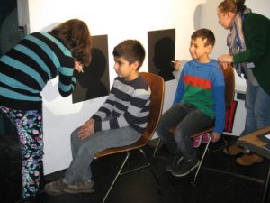 Währenddessen ist eine andere Gruppe dabei herauszufinden, welche Gegenstände Schatten bilden, wie sich diese Schatten verändern, wenn die Gegenstände näher zur Lichtquelle bzw. weiter entfernt davon plaziert werden. Alle Erkenntnisse werden in den „Lichtordner“ eingetragen, bevor es zur Licht-und Wärmestation geht. Hier wird mit schwarzen und weißen Filmdöschen gezeigt, dass schwarz Licht absorbiert, was zur Folge hat, dass sich das Wasser in dem schwarzen Filmdöschen erwärmt.