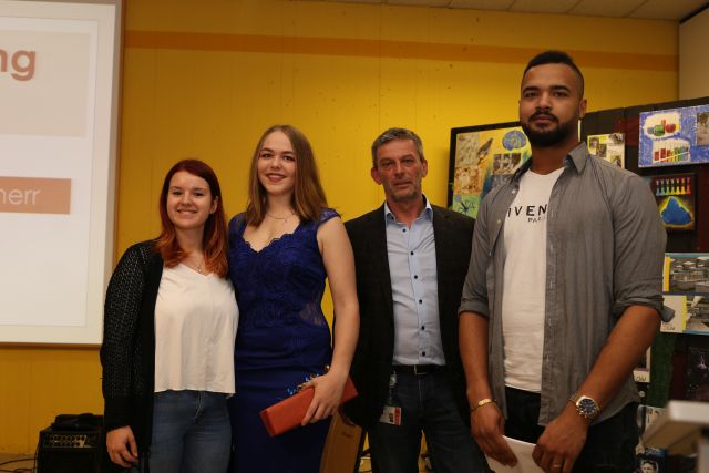 Ehrung von Vanessa Noll durch die JAV-Vertreter Fr. Stahl, Hr. Methinul und den Betriebsrat der BASF, Hr. Waldherr