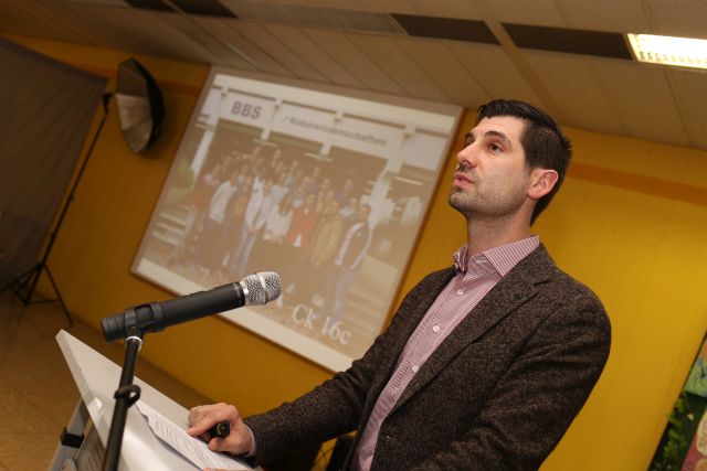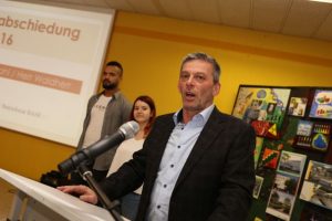 Hr. Dr. Marz gibt einen Rückblick der letzten 3,5 Jahre Schulzeit an der BBS-N
