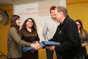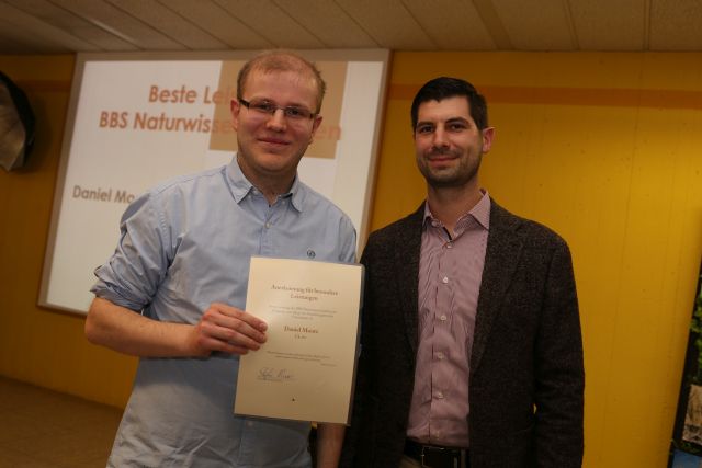Ehrung des Schulbesten, Daniel Mootz, durch Klassenlehrer Hr. Dr. Marz