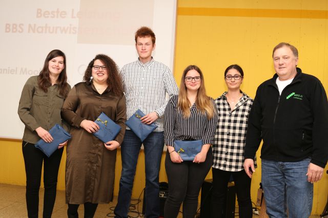 Laura Westerhout, Justine Salm, Alex Wammes, Sandra Günther und Sevcan Simsek werden für ihre Mitarbeit in der Schülervertretung durch den Vertrauenslehrer Hr. Seyboldt geehrt