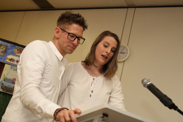 Die Absolventenrede halten Kathrin Kaufhold und Manuel Becker aus der Ck 16g