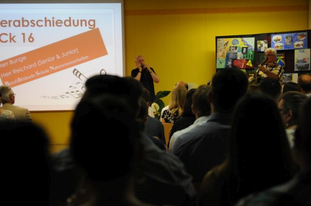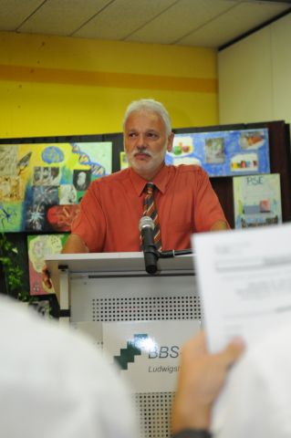 Hr. Dr. Marz gibt einen Rückblick der letzten 3 Jahre Schulzeit an der BBS-N