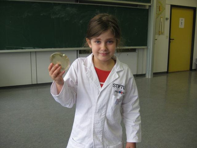 Es war hinreißend anzusehen, wie sich die Kleinen sehr selbstbewusst in den von der Stiftung Pfalzmetall zur Verfügung gestellten Kitteln bewegten. „ Ich bin Frau Dr. Sarah“, flötete Sarah und fachsimpelte mit mir über Bakterien.