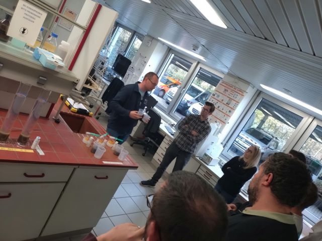 - 08. November 2025: In Kaiserslautern führte uns Herr Steidel (Sachgebietsleitung Betriebsführung/Werkstätten – Stadtentwässerung Kaiserslautern) durch die Entwässerungsanlagen und demonstrierte die Konditionierung von Klärschlamm in der Praxis. Er wurde von Herrn Schäfer (WVE GmbH) im Labor (siehe Fotos) tatkräftig unterstützt.