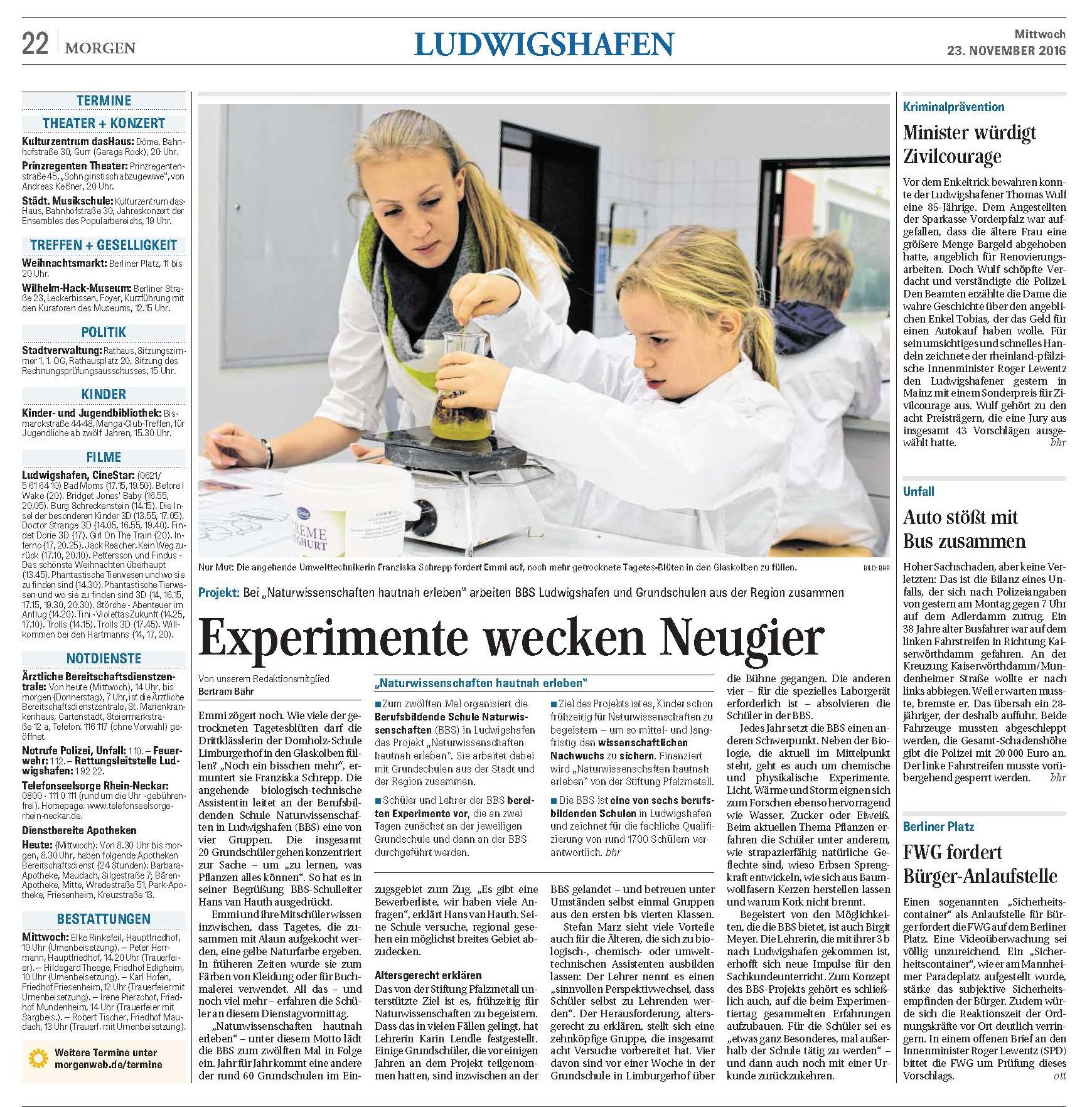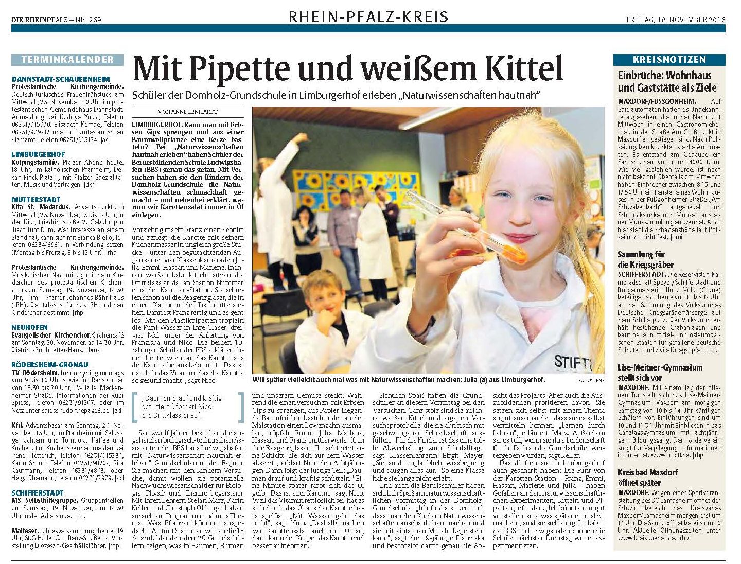 Ein Kooperationsprojekt der Berufsbildenden Schule Naturwissenschaften Ludwigshafen und Grundschulen der Region – dieses Jahr mit der Domholzschule in Limburgerhof.
