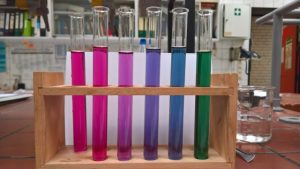 Der zweite Projekttag fand traditionell eine Woche später in den Laboren der BBS Naturwissenschaften statt. Mit Alaun wurden Tagetesblüten gekocht, um den gelben Farbstoff der Blüten zu gewinnen.