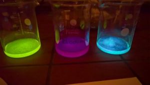 Des Weiteren wurde eine Hygieneschulung mit fluoreszierender Handcreme durchgeführt. Mineralien wurden mit kurzwelligem UV-Licht auf ihre Echtheit überprüft. Die Grundschüler fühlten sich wie echte Kriminalermittler, indem sie Blut (Blutersatzstoff) mit einer Luminollösung nachwiesen. Im abschließenden Quiz stellten die Grundschüler ihr erworbenes Wissen unter Beweis.