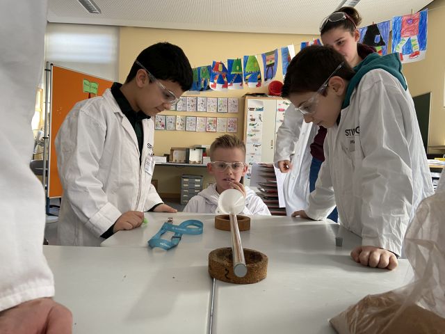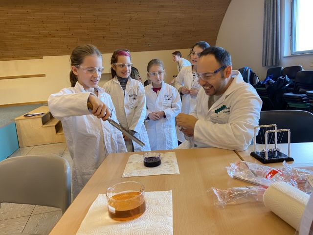 • Partner in diesem Jahr war die Klasse 3a der GS Hochfeldschule. Gemeinsam führten die Lernenden Experimente rund um das Thema Schall durch.
