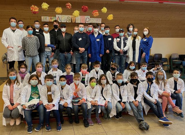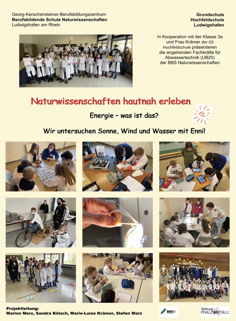 Gerade befinde ich mich in der Grundschule Hochfeldschule Ludwigshafen und beobachte die UB20 dabei, ihres Zeichens angehende Fachkräfte für Abwassertechnik im zweiten Ausbildungsjahr, wie sie Grundschülerinnen und Grundschülern der Klasse 3a im Rahmen des Projekts „Naturwissenschaften hautnah erleben“ Energie erlebbar macht.