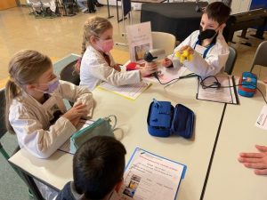 Ich sehe fünf Stationen vor mir, die angeregt bearbeitet werden und dass große wie kleine Menschen mitten in Fachgesprächen sind. Durch die Arbeitsblätter kommt die Ergebnissicherung für die Kleinen nicht zu kurz, während die Großen mit Weitsicht ihre vorbereiteten Stationen erklären.