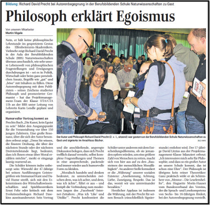 Richard David Precht sprach über sein Buch „Die Kunst, kein Egoist zu sein“. Mitreißend und unterhaltsam erläuterte er den an seinen Lippen hängenden Zuhörern mit treffenden Beispielen den Begriff Moral.