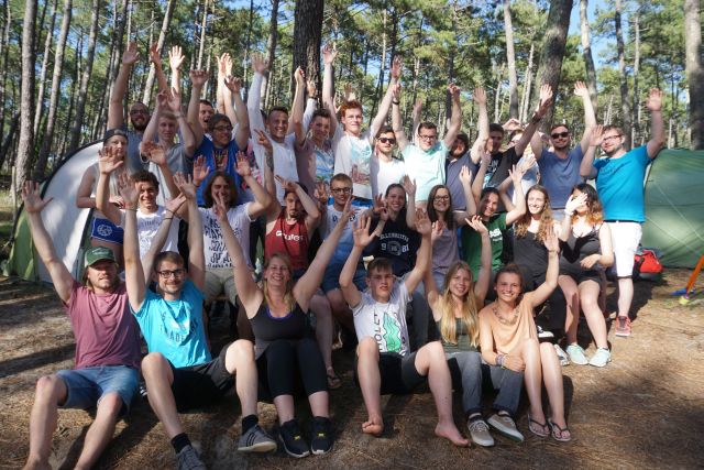 Unser Ziel lag ca. 100 km südlich von Bordeaux und trug den schönen Namen Saint-Girons Plage. Während der entspannten 17,5 stündigen Busfahrt bekamen wir als Lehrer zahlreiche Fragen über unseren Zielort gestellt und fühlten uns nicht mehr nur als Pädagoge, sondern auch ein wenig als Papa Schlumpf. „Herr Back, ist es noch weit?“, „Frau Noll, wie lange machen wir jetzt Pause?“ Komisch und auch spannend zugleich war es, dass wir die meisten Fragen nicht beantworten konnten, da wir auch noch nie vor Ort gewesen waren. Nach Ankunft im Surfcamp um 10 Uhr Sonntag morgens hatten wir 2 Stunden Zeit unsere Zelte zu beziehen und uns das Camp etwas näher anzuschauen. Der Surfkurs begann am Tag der Ankunft um 12 Uhr mit vielen müden aber gespannten Gesichtern. Durch die sehr professionelle und einfühlsame Betreuung durch die Surflehrer des Wellenreiter Surfcamps, sowie durch die belebende Kraft des Ozeans verwandelte sich die anfängliche Lethargie sehr schnell in flächendeckende Begeisterung und sportlichen Tatendrang. Jeder Surftag beinhaltete neben zahlreichen praktischen und spielerischen Übungseinheiten im Meer, im See und an Land auch komplementäre Theorieinhalte, um das Verständnis für die für alle neue Sportart zu unterfüttern. Die Theorieeinheiten wurden durch die gut ausgebildeten Surflehrer sehr interessant und adressatengerecht aufbereitet und dargeboten. Einige Beispiele hierfür sind die Gezeitenkunde, Wetterkunde und der Umgang mit Strömungen. Diese theoretische Unterfütterung der Lehrinhalte führte zudem dazu, dass die Teilnehmerinnen und Teilnehmer auch verbal immer mehr zu Surferinnen und Surfern heranwuchsen und Begriffe wie: „Hang Loose“, „Swell“ „Off-Shore“ und „Wipe-Out“ in ihren Wortschatz integrierten.