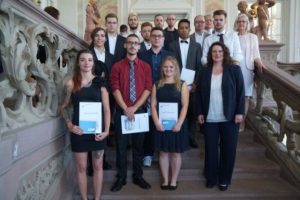 Am 20. 06. 2018 war es soweit. Im großen Sitzungssaal der ADD in Trier fand die feierliche Übergabe der Facharbeiterbriefe und der Abgangszeugnisse der berufsbildenden Schulen in den umwelttechnischen Berufen statt. Die ehemaligen Schüler der BBS-Naturwissenschaften in Ludwigshafen und die der David Roentgen Berufsschule in Neuwied fanden sich in Trier ein, um aus den Händen von Frau Dr. Regina Bux ihren Facharbeiterbrief in Empfang zu nehmen.